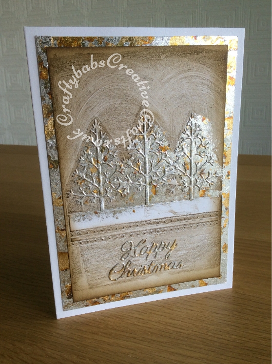 Embossed and gilded Christmas card made using inspiration from the Designer Cardmaking Ultimate Crafts Issue 3, the embossing folder included with the magazine was inked before embossing and sentiment die cut using Britannia sentiment dies. - craftybabscreativecrafts.co.uk