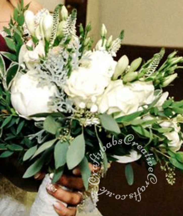 First Wedding Anniversary shadow box card replicating flowers in the bridal bouqet made using various dies including Tonic Shadow Box Creations die set, Heartfelt creations Majestic Blooms Die, Cheery Lynn Baby’s breath flower die, Memory box Norrland flower dies, Altenew Garden Picks die set, Alt-e-new Layered Rose die set, free with issue 174 of Simply Cards & Papercraft magazine and Britannia Sentiment dies.