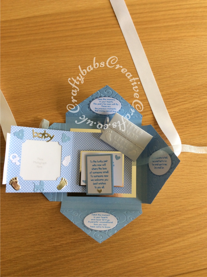 Baby Boy Birth keepsake made using a variety of dies including Marianne Design Cutting and embossing stencils Creatables – My first sneakers, Quickutz nesting Tag dies, Lettering created using Gemini Die Set Expressions Uppercase Alphabet, Gemini Die Set Expressions Lowercase Alphabet, Ellison thick cutz envelope die, Cuttlebug baby elements die, Marianne baby feet dies, Spellbinders nesting plain & scalloped oval dies, Parchment pocket made using an envelope template stencil, baby clothes and baby words embossed using brass stencils, outer cover embossed using couture creations intrinsic embossing folder.