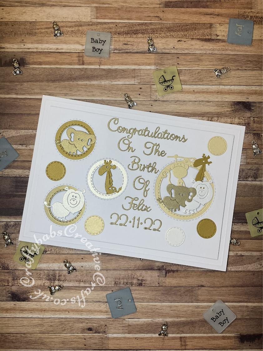 nbp2 Published January 9, 2023 at 842 × 1123 in Birth ← Previous Next → New Baby Birth Card made using the following dies; Crealies Nest-Lies Double stitch circles No 33, set of 4 Cuttlebug 2×2 Zoo animals dies, Sentimentally Yours elegance script alphabet dies.