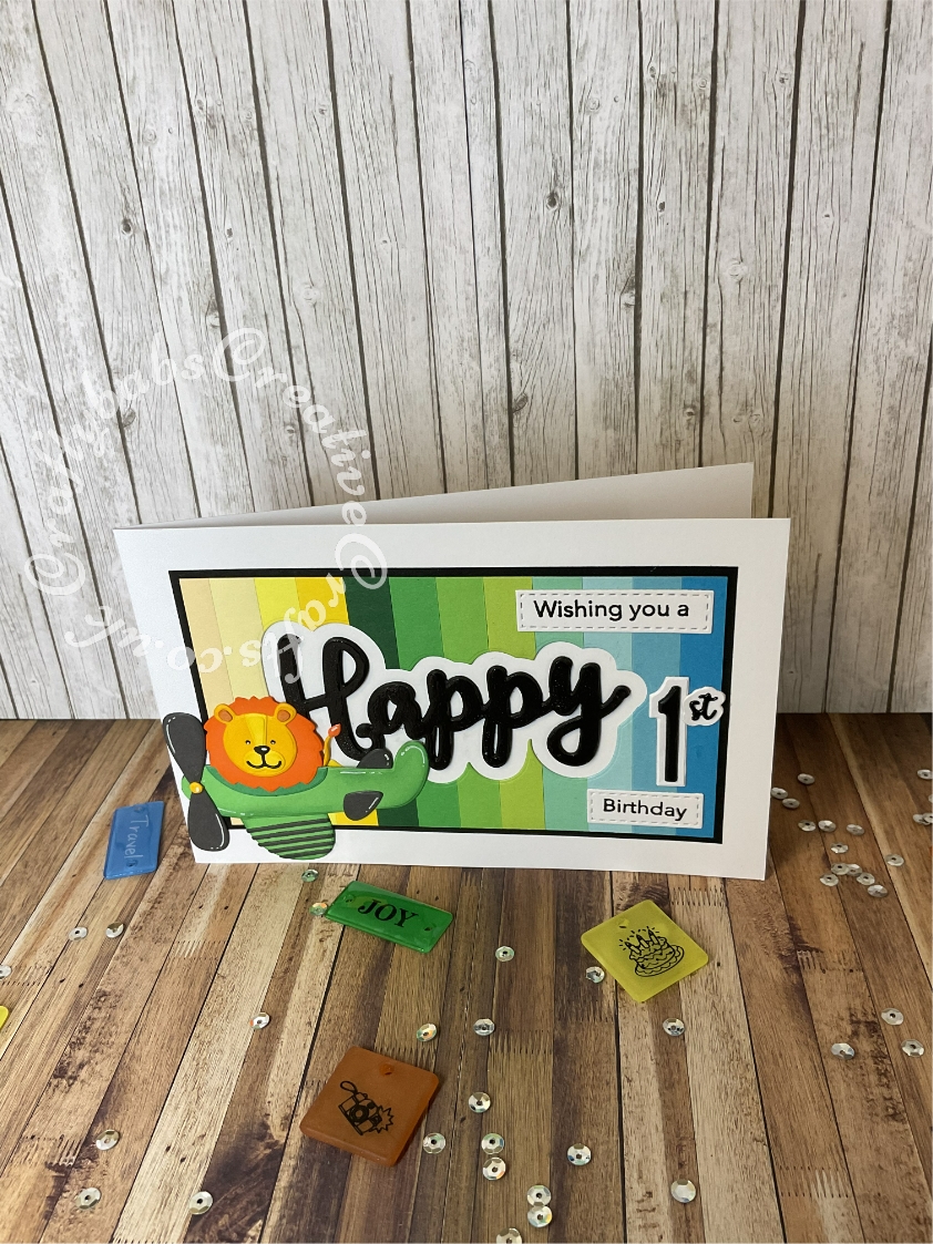 Pbm1 Published August 2, 2022 at 842 × 1123 in Boys ← Previous Next → 1st Birthday card made using paper pieced background and various dies including:- Creative Die set ‘Happy’ sentiment dies, Crealies number die and Nellie Snellen Dada dies Lion in airplane, stitched rectangle dies and sentiment stamps.