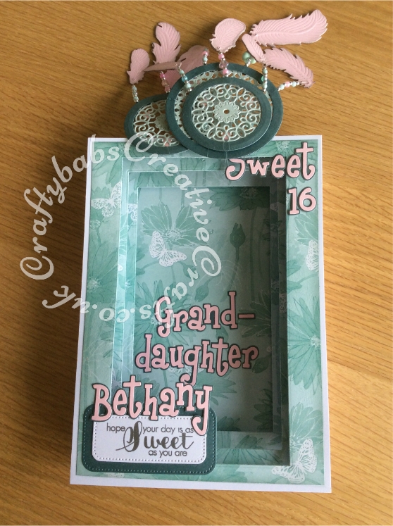 Dream Catcher Panorama Card made using a variety of dies including; Todo collection feather dies, Spellbinders Shapeabilities Dies-Feathers, Sizzix Sizzlits Alphabet 654546 Girls are weird dies, Nesting Circles dies, Nellie Snellen Multi Frame Dies - Straight Dotted Rectangle dies, Tattered Lace Doily Flourish die, Hardwick Scallop Circle (D358) die, Tattered Lace Panorama Large Inner Plates (PAN02) and Tattered Lace Panorama Large Concertina Side (PAN03) - craftybabscreativecrafts.co.uk