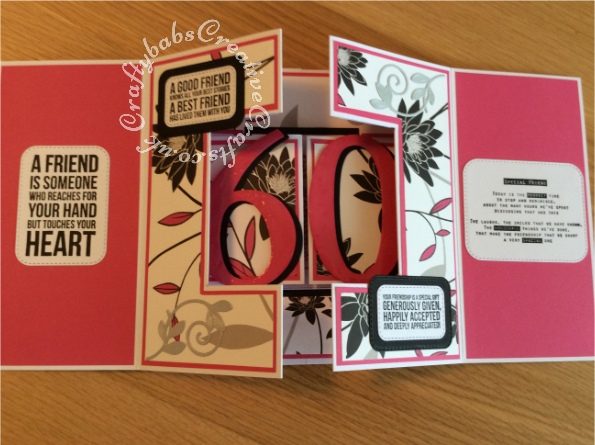 Extra Large Double Shutter 60th Birthday card made using 3 8"x8" card blanks joined together and various die including;Card Making Magic Die Set Happy Birthday Sentiment | 6in x 6in Collection by Christina Griffiths, Card Making Magic Die Set On Your Special Day Sentiment 6in x 6in Collection by Christina Griffiths, Sizzix Bigz Sassy Serif Numbers dies, Tattered Lace Die-Special Person, Nellie Snellen Multi Frame Dies - Straight Dotted Rectangles, Creative Expressions In the Tool Box Necessities Craft Die Set CED23011 for 'Best Friend' sentiment, Tonic Studios "Occasions" Pop up sentiment dies and various sentiment stamps for sentiments. - craftybabscreativecrafts.co.uk