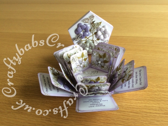 Exploding Box card made using a number of dies including The Tattered Lace Pentagon box die set, sentiments 2014 and mini butterfly dies, Cheery Lynn