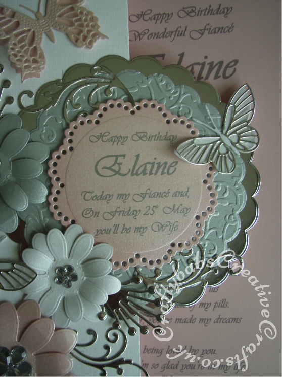 A4 Floral Butterfly birthday card made using Quickutz cookie cutter curly flourish border die, Quickutz lifestyle scalloped circle dies, Nellies's nested Threaded Scallop Circle Layering Dies, Sizzix originals hearts die, Xcut Petal posies dies, Cheery Lynn exotic butterfly die and Memory Box Kaleidoscope and Moonlight butterfly dies, Marianne frame and swirls set flourish dies and anja's leaves die, - craftybabscreativecrafts.co.uk