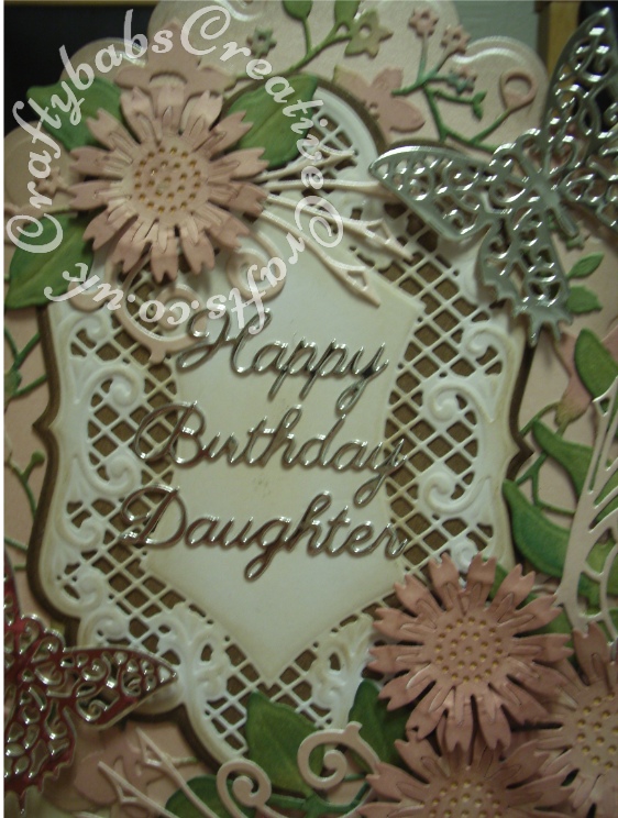 Vintage Style Floral large Easel card made using a variety of dies including Marianne Dies Anja's Large Ovals dies, Spellbinders Les Papillons dies, Kreaxions sunflower dies, Spellbinders shapeabilities Foliage dies, Memory Box Catalina border die and Spellbinders Grand Nestabilities scalloped ovals dies. - craftybabscreativecrafts.co.uk