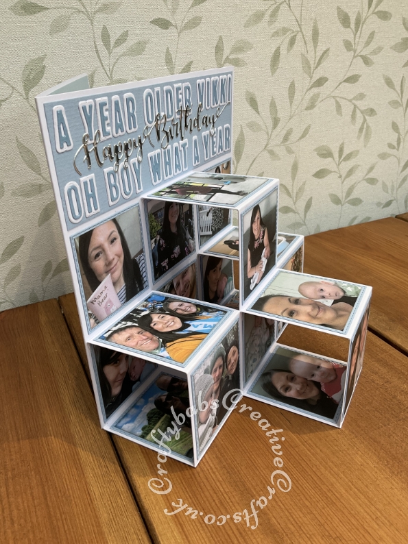 v222 Published January 31, 2022 at 595 × 794 in Ladies Extra Special ← Previous Next → Photo cubes Birthday card using paper trimmer and scoreboard. Lettering dies are unbranded shadow dies, Happy Birthday die by icraft.