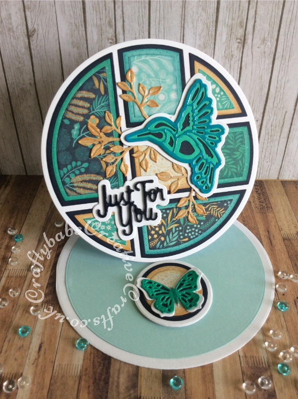 Easel cards made using Card Making Magic Tapis Builder Die set by Christina Griffiths plus nesting circles dies, Paper Boutique Sentiment dies. Sue Wilson Dies – Triple Layer Collection – Hummingbird – CED9505, Sue Wilson Designs – Die – Finishing Touches Collection – Spring Foliage and Bright Rosa butterfly border dies.