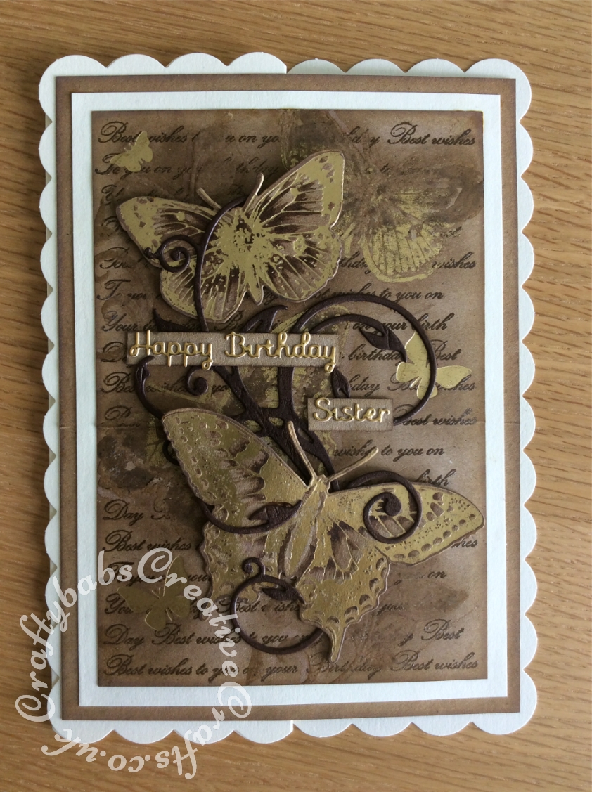 Hot Foiled and stamped Butterfly birthday card made using various dies including TODO Butterflies Trio Die Template, TODO Butterflies Letterpress and Hot Foil Press, Gemini Foil Stamp Die Set Elements Butterfly Dreams, Hot off the Press Viney Swirl Die, Hunkydory – Moonstone Relative Sentiments dies and Hunkydory Moonstone Dies – Simply Sentiments.