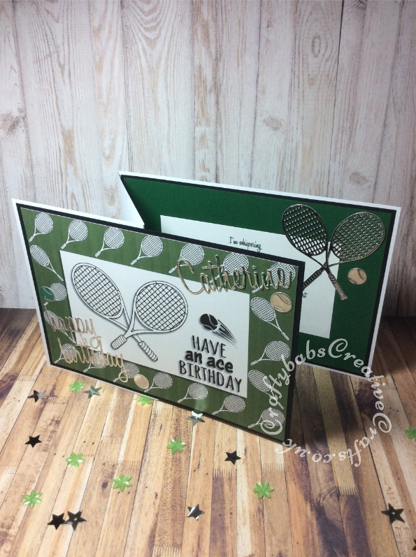 Tennis themed made using free Digi stamp downloads from Craftworld Premium members Club and Craft Artist Professional Software. and Cheery Lynn Sports Pack Metal Die set , Sizzix Tim Holtz Thinlits Die Set 13PK Celebration Words and Sizzix Thinlits Die Set 69PK - Alphanumeric, Script (1" Tall) by Tim Holtz. - craftybabscreativecrafts.co.uk