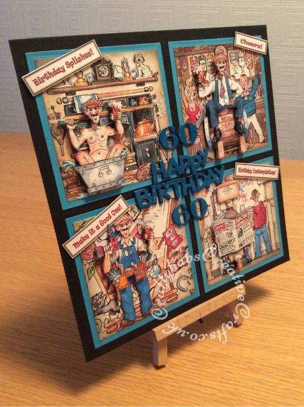 m609 Published January 30, 2019 at 595 × 797 in Men’s Ages ← Previous Next → 8″ x 8″ 60th Male Birthday card made using the La Pashe CD Rom The Big One, Flippin men decoupage reduced in size to fit and Spellbinders Etched Alphabet dies heat embossed for sentiment.