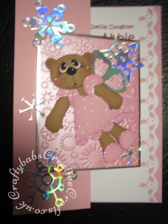 Fairy Bear Christmas Card1 Published February 26, 2017 at 558 × 744 in Cute ← Previous Next → Fairy Bear Christmas card made using Craftycat custom made wooden New Bear die, Toffee Bear outfit die, Quickutz 4×4 snowflake die, Sizzix originals butterfly #3 die and Cuttlebug snowflake embossing folder.