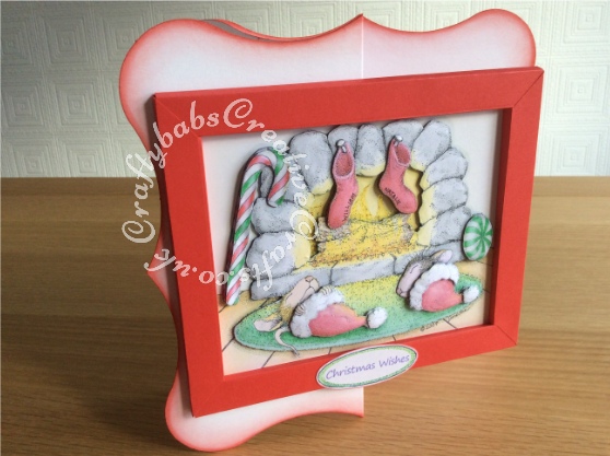 Large 3D Framed Decoupaged Christmas Card made using Joanna Sheen Housemouse CD Rom. Decoupage assembled with pinflair glue gel and highlighted with glitter and Glossy accents.