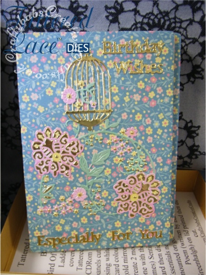 Tattered Lace Bird Of Paradise die, Jacob’s ladder card and box. Die multi cut, coloured, layered and paper-pieced. Sentiments printed and stamped. Oval cut using Tattered Lace essential ovals die set.
