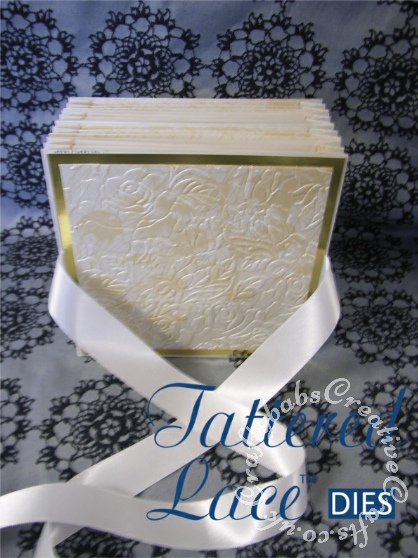 Tattered Lace Majestic Rose Wedding card. Made using the Panorama dies, essential nesting ovals dies and the Majestic Rose die. Sentiments printed onto patterned pearlescent card before die cutting back panel of each section.
