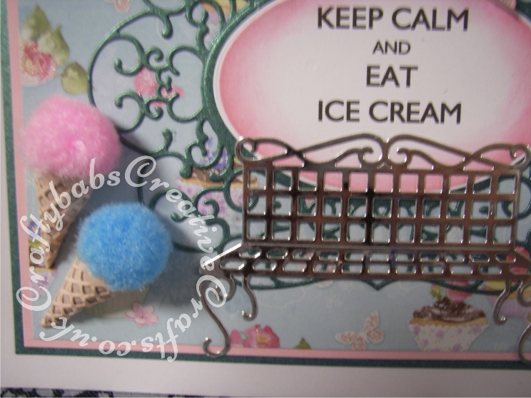 tld2 Published March 11, 2016 at 744 × 558 in Tattered Lace Country Garden Samples ← Previous Next → Tattered Lace Country Garden Eltham Oval, Eltham corner (for ice cream cones), sentiment printed and cut with Nellie Snellen oval, bench die.