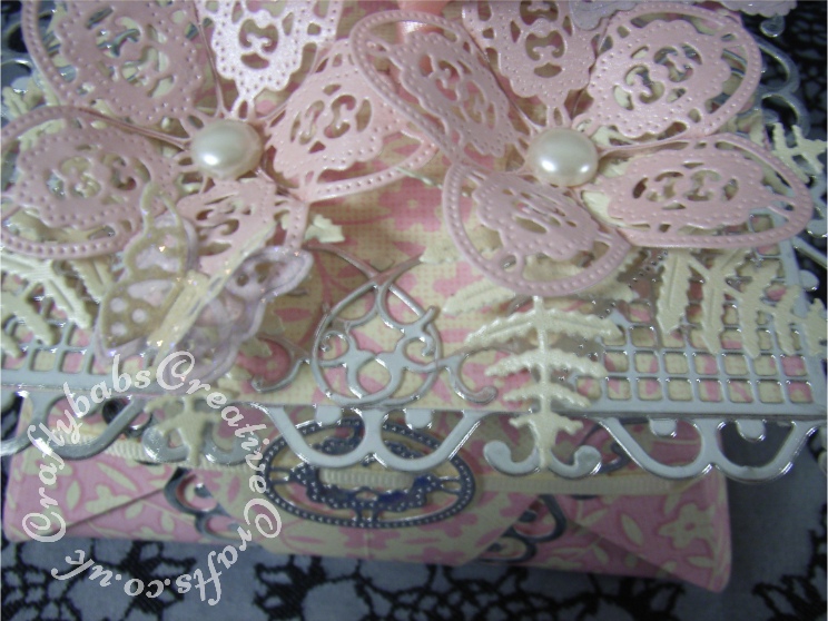 tld40 Published March 11, 2016 at 744 × 558 in Tattered Lace Country Garden Samples ← Previous Next → Tattered Lace Country Garden Collection, Origami Trinket Box using Tattered Lace Country Garden collection Eltham corner, Eltham border, centre of Eltham ovals, Butterfly and Fiddle head fern dies, with flat back pearls and ribbon to trim.