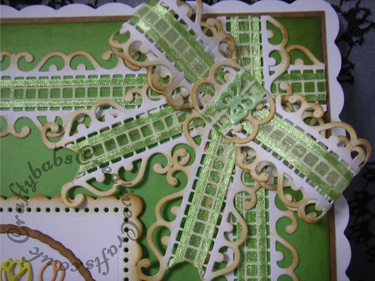 Tattered Lace Country Garden Collection, Basket of Tulips card using Tattered Lace Country Garden collection Eltham border, Butterflies and tulips dies, handle of basket from Tattered Lace Basket die base made with border die and quilling paper, Back ground mat from Chatsworth scalloped square die. ribbon to trim.