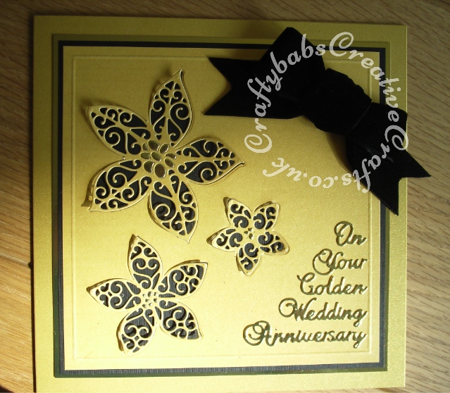 tle10 Published March 11, 2016 at 639 × 558 in Tattered Lace Kaleidoscope Collection Samples ← Previous Next → Golden Wedding Card made using Tattered Lace Kaleidoscope XL, L & M flowers dies, centre sections only cut into card front and again from gold mirror for flower centres. Sentiments Tattered Lace Anniversary Words dies.
