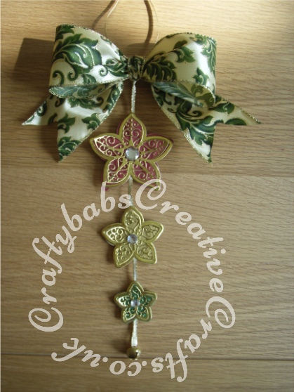 Tattered Lace kaleidoscope Flower Decoration Published March 11, 2016 at 419 × 558 in Tattered Lace Kaleidoscope Collection Samples ← Previous Next → Christmas Bow Decoration made using Tattered Lace Kaleidoscope XL, L & M flowers dies. All flowers cut using both part of each die first in gold mirror board and background layers cut in red, gold and green pearl card.