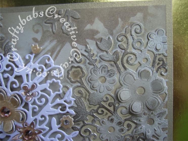 tla25 Published March 11, 2016 at 744 × 558 in Tattered Lace Lavish Blooms Samples ← Previous Next → Tattered Lace Card made using the Lavish Blooms Bouquet die. Background made using die cuts, acetate stencils and funky foam stamps cut using the same die, distress inks and mica powders.