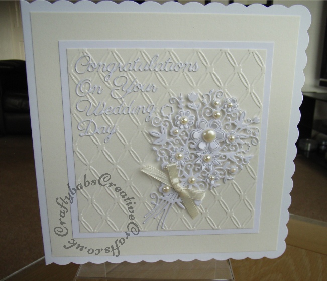 tla28 Published March 11, 2016 at 651 × 558 in Tattered Lace Lavish Blooms Samples ← Previous Next → Tattered Lace White on cream wedding card using the Tattered Lace Lavish Blooms Bouquet die, and couture creations tied together embossing folder. Britannia dies wedding words used for sentiments. 1 Repin