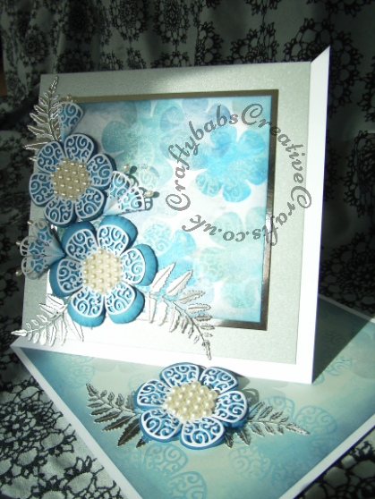 tla8 Published March 11, 2016 at 419 × 558 in Tattered Lace Lavish Blooms Samples ← Previous Next → Tattered Lace Twisted easel card made with Lavish Blooms poppies and leaves. Background done with acetate stencils and funky foam stamps cut with the same dies, distress inks, versa mark and mica powders.