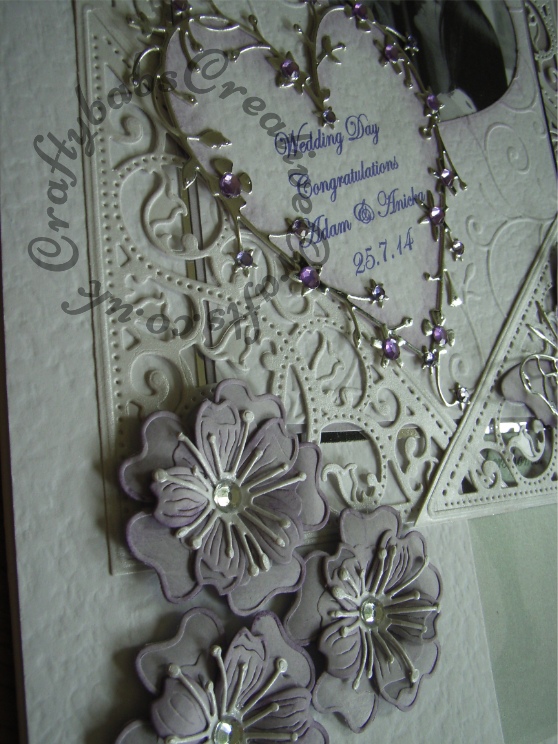 lw2 Published March 16, 2016 at 558 × 744 in Wedding Extra Special ← Previous Next → Large A4 Wedding card made using included Spellbinders Gold Elements dies and blooms 3 dies, Memory Box Vivienne and Darla butterflies, Bingham and Grand Heart dies. Background embossed with Xcut embossing folder.