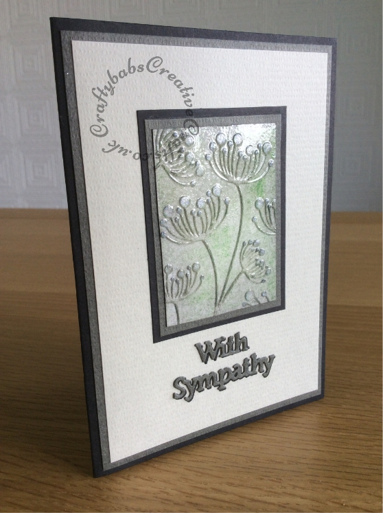 Tonic Cardmaking Collection Issue2d Published June 2, 2017 at 558 × 747 in Tonic Cardmaking Collection Issue2d ← Previous Next → Sympathy Card With Love Card made using the embossing folder included with the Tonic Cardmaking Collection Issue 2, inked and spectrum Noir clear sparkle pen applied to flowers then the whole topper was heat embossed with clear embossing powder.