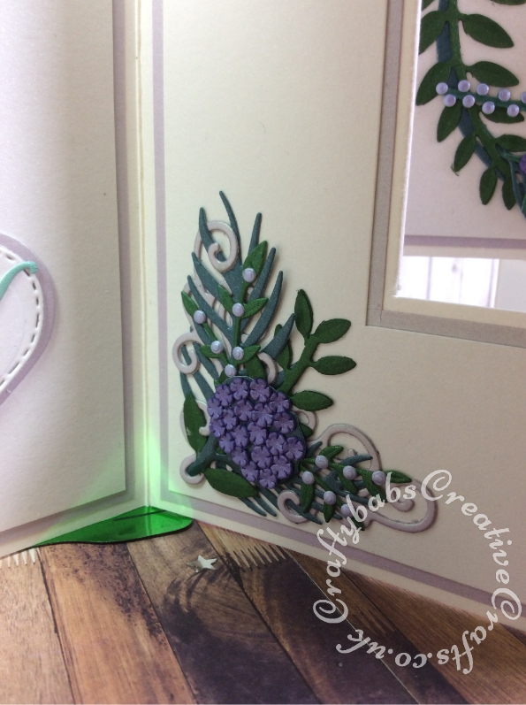Extra Large double shutter Wedding card themed to match wedding invitation. Made using various dies including Nellie’s Choice Multi Frame Die – basic heart MFD060, unbranded nesting stitched hearts dies. Cheery Lynn Delicate Lace script alphabet dies, Tattered Lace Wedding Words die set, Tonic Studios Romanesque Bracket Corner Die Set, Memory Box Floral Breeze die plus numerous small floral and foliage dies from lots of different die sets.